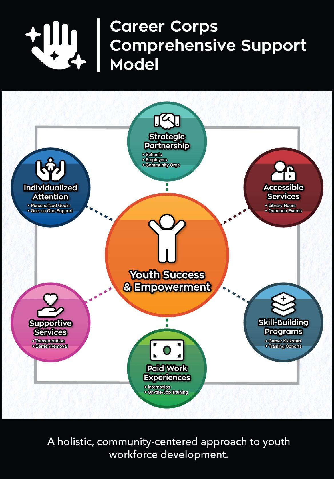 "Through strategic outreach, strong community partnerships, and meaningful paid work experiences, Career Corps empowers youth to build skills, gain confidence, and pursue career pathways that lead to self-sufficiency. Local employers want the talent but not the cost — Career Corps bridges that gap through grant-funded internships, creating a true win-win for both the participant and the employer."