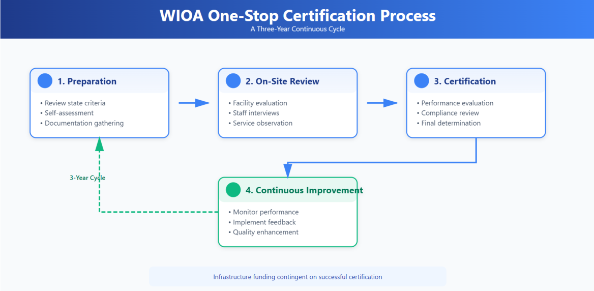The Workforce Innovation and Opportunity Act (WIOA) mandates that each state establish minimum criteria for certification of One-Stop centers and the One-Stop delivery system. This certification process is fundamental to ensuring customer-focused, seamless services from a network of partners dedicated to helping individuals overcome barriers to employment and career advancement.
